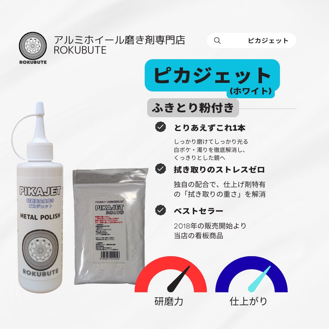 ピカジェット超鏡面金属磨き剤200mlふきとり粉セット
